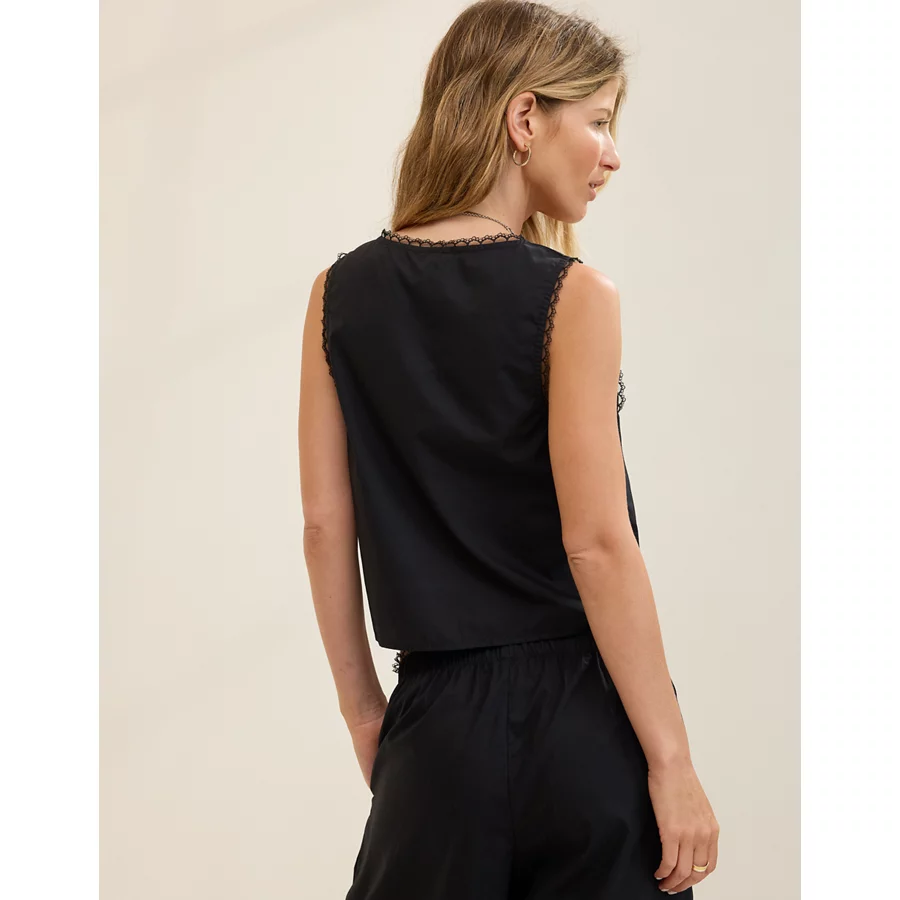 Aerie Off-Duty Poplin Tie Front Tank Top – True Black