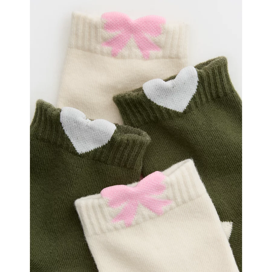 Aerie Peaking Icon Quarter Socks 2-Pack – Olive Fun