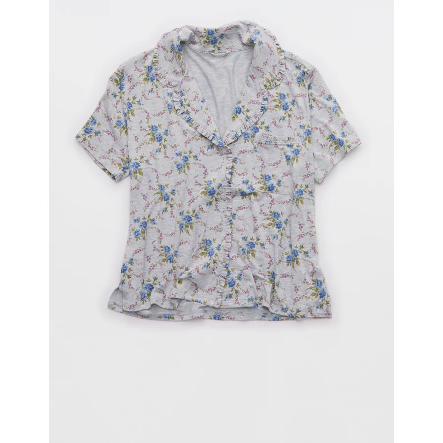 Aerie Real Soft® Ruffle Pajama Shirt – Monaco Blue