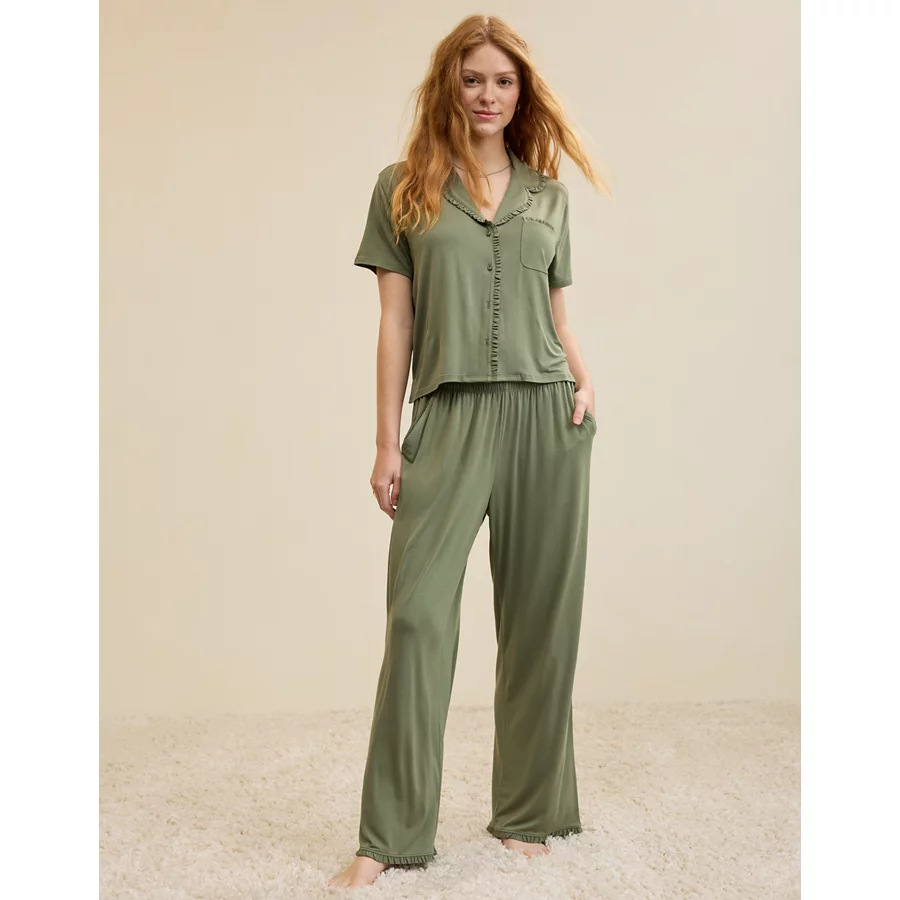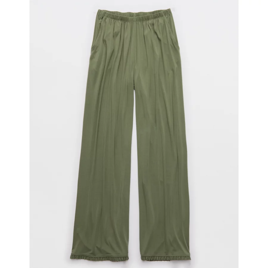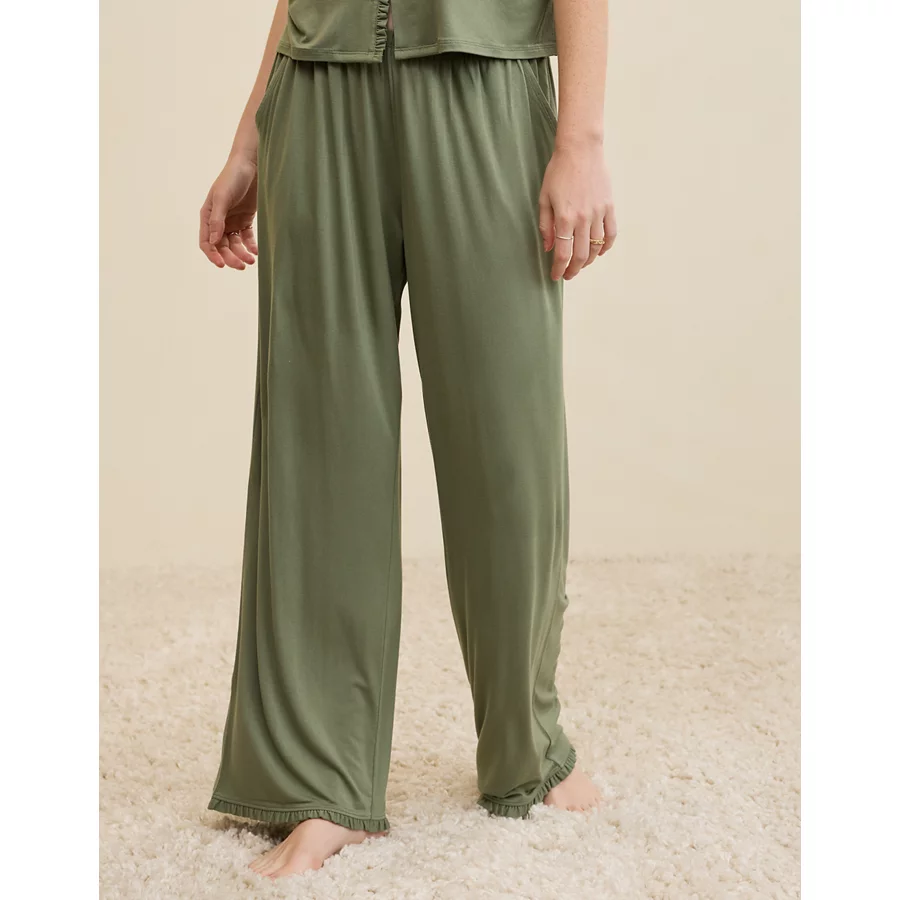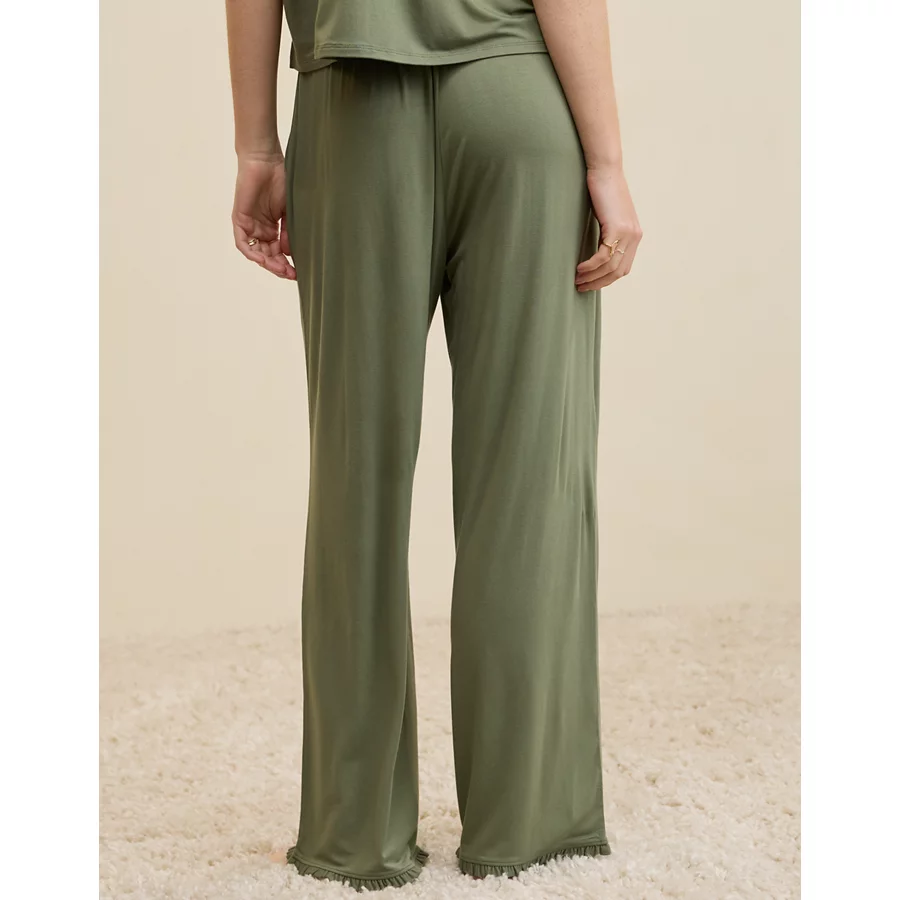 Aerie Real Soft® Ruffle Trouser PJ Pant – Olive Fun