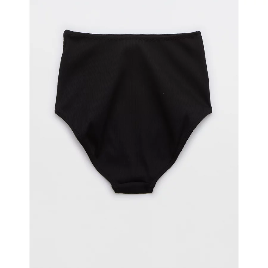 Aerie Ribbed High Waisted Full Coverage Bikini Bottom – True Black