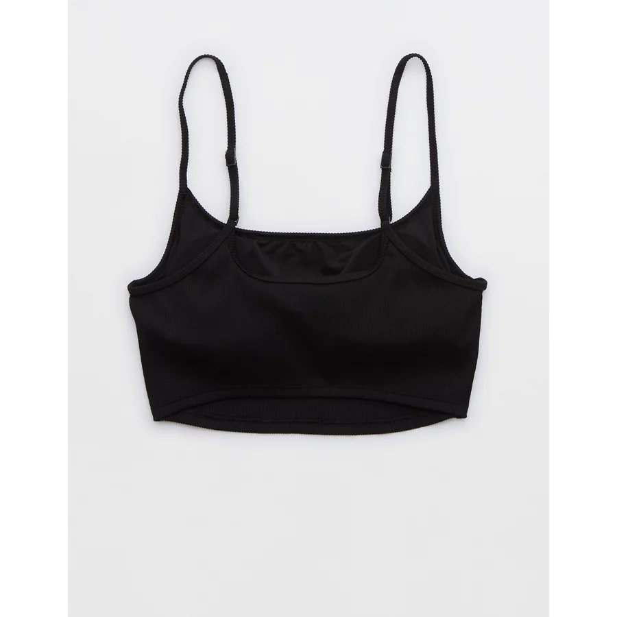 Aerie Ribbed Scoop Longline Bikini Top – True Black