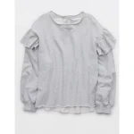 Aerie Ruffle Sleeve Sweatshirt - Heather Frost
