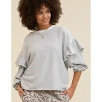 Aerie Ruffle Sleeve Sweatshirt – Medium Heather Gray