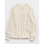 Aerie Sherpa Henley Sweatshirt - Medium Heather Gray