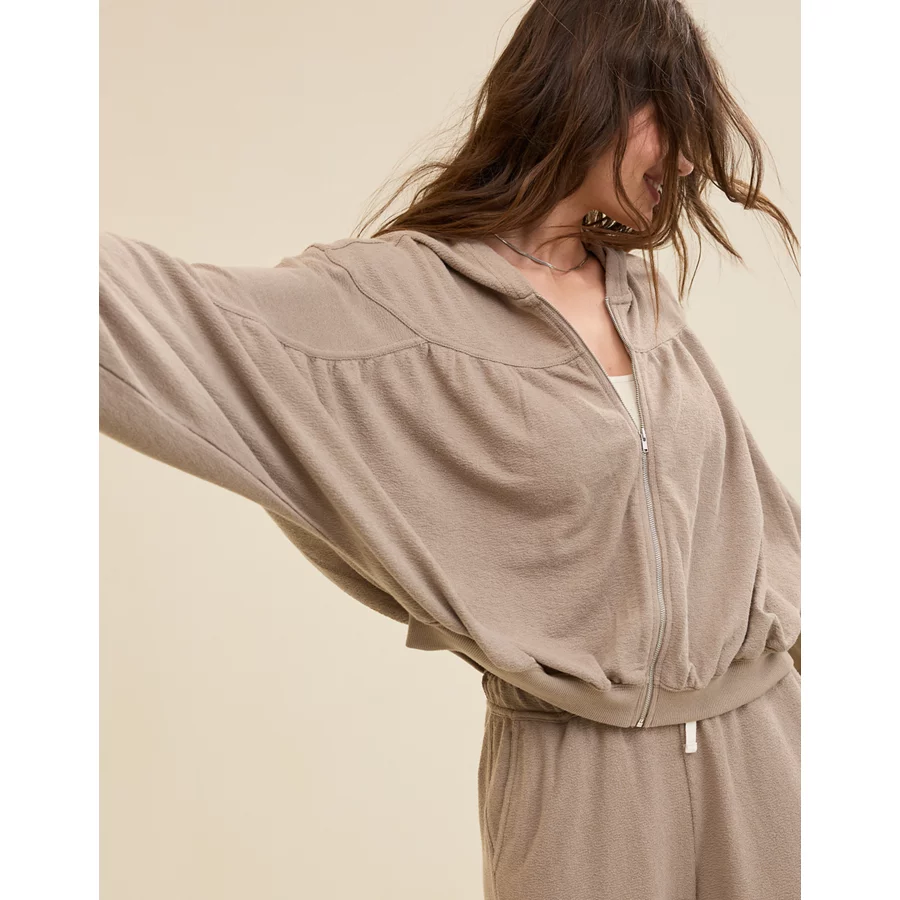 Aerie Soft Life Full Zip Sweatshirt – Beige