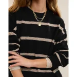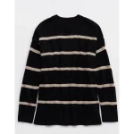 Real Good Everyday yarnRolled necklineRibbed trim on cuffs and hemPointelle deets and split cuffs on the sleevesStripedAccessibility deets: over-the-head access