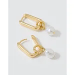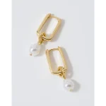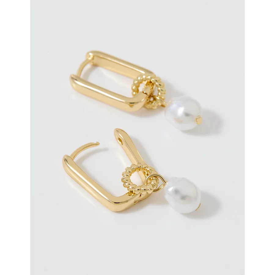 Aerie Square Hoop Pearl Dangle Earring – Gold