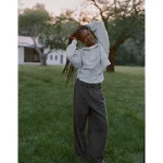 Real Good Everyday yarnRolled necklineRibbed trim on cuffs and hemPointelle deets and split cuffs on the sleevesStripedAccessibility deets: over-the-head access