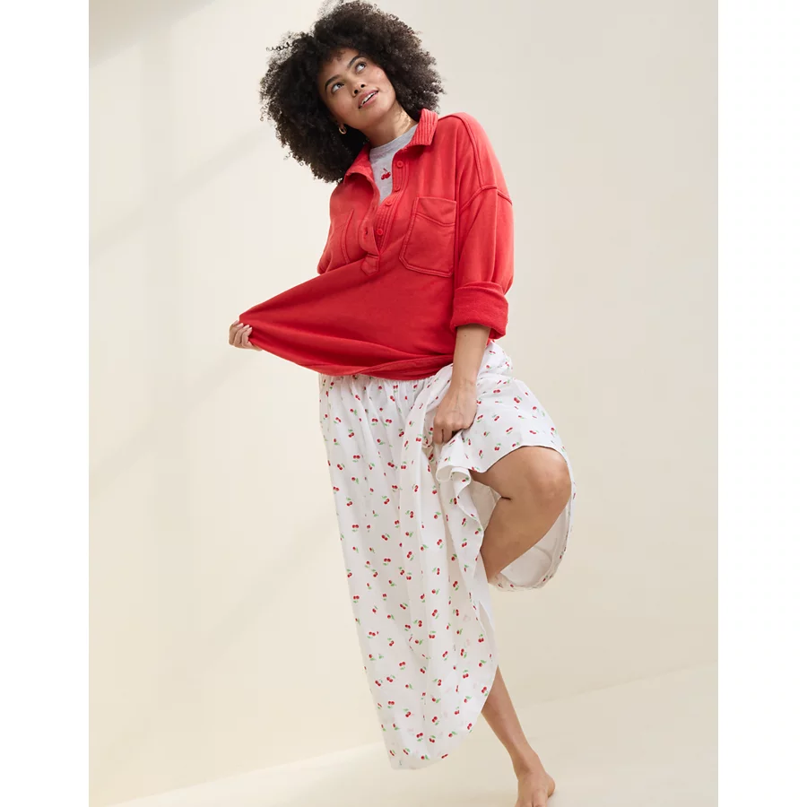 Mixed fabrics! Soft, stretchy knit bodice with a lightweight gauzey skirtScoop necklineSide seam pockets (!!)Accessibility deets: over-the-head access for easy