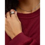 Real Good Everyday yarnRolled necklineRibbed trim on cuffs and hemPointelle deets and split cuffs on the sleevesStripedAccessibility deets: over-the-head access