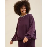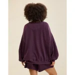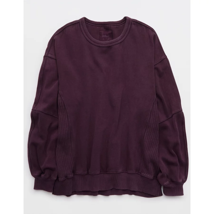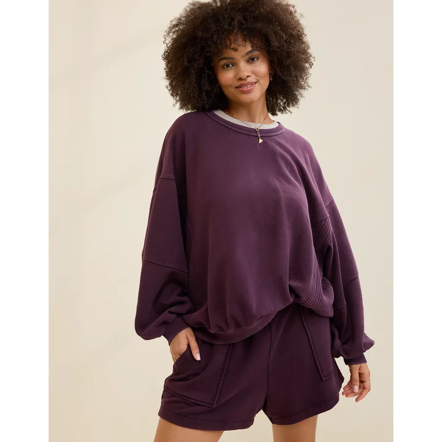 Real Good Everyday yarnRolled necklineRibbed trim on cuffs and hemPointelle deets and split cuffs on the sleevesThis style is heathered