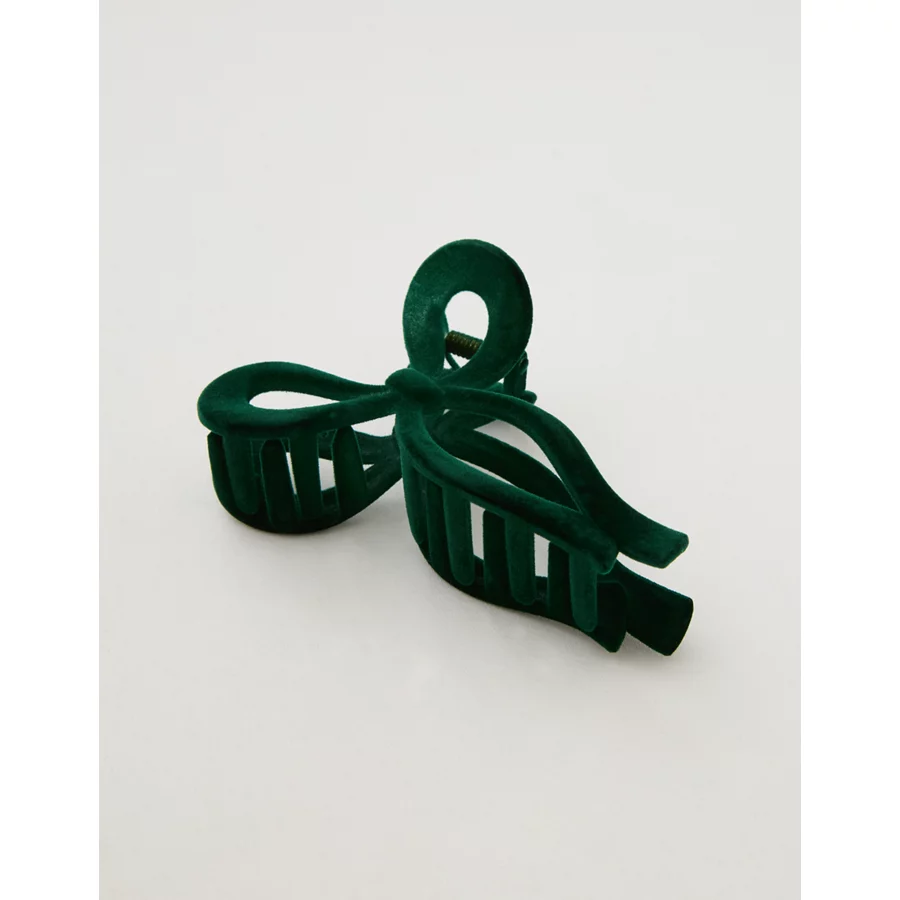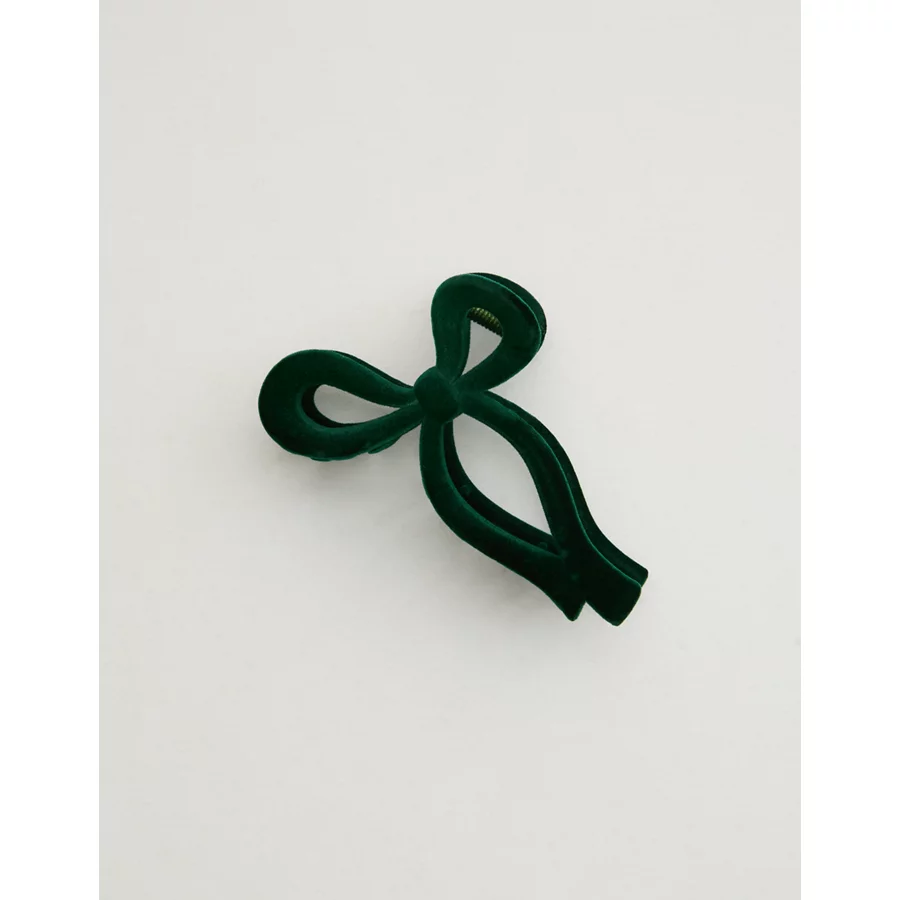 Aerie Velvet Bow Hair Clip – Mystical Green