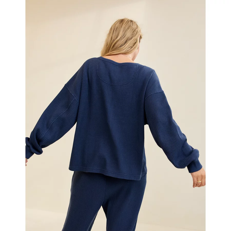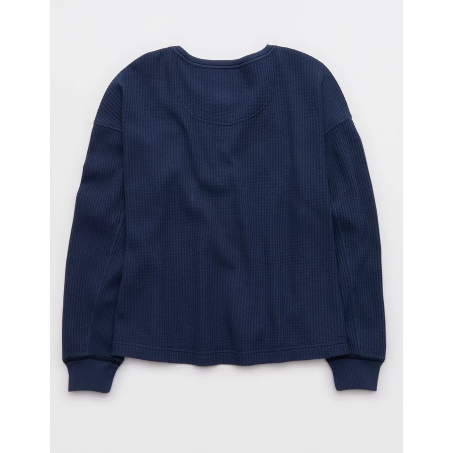 Aerie Waffle Henley Sweatshirt – Navy