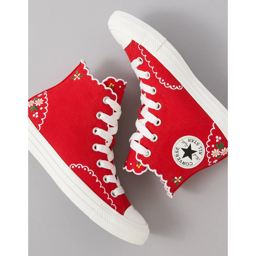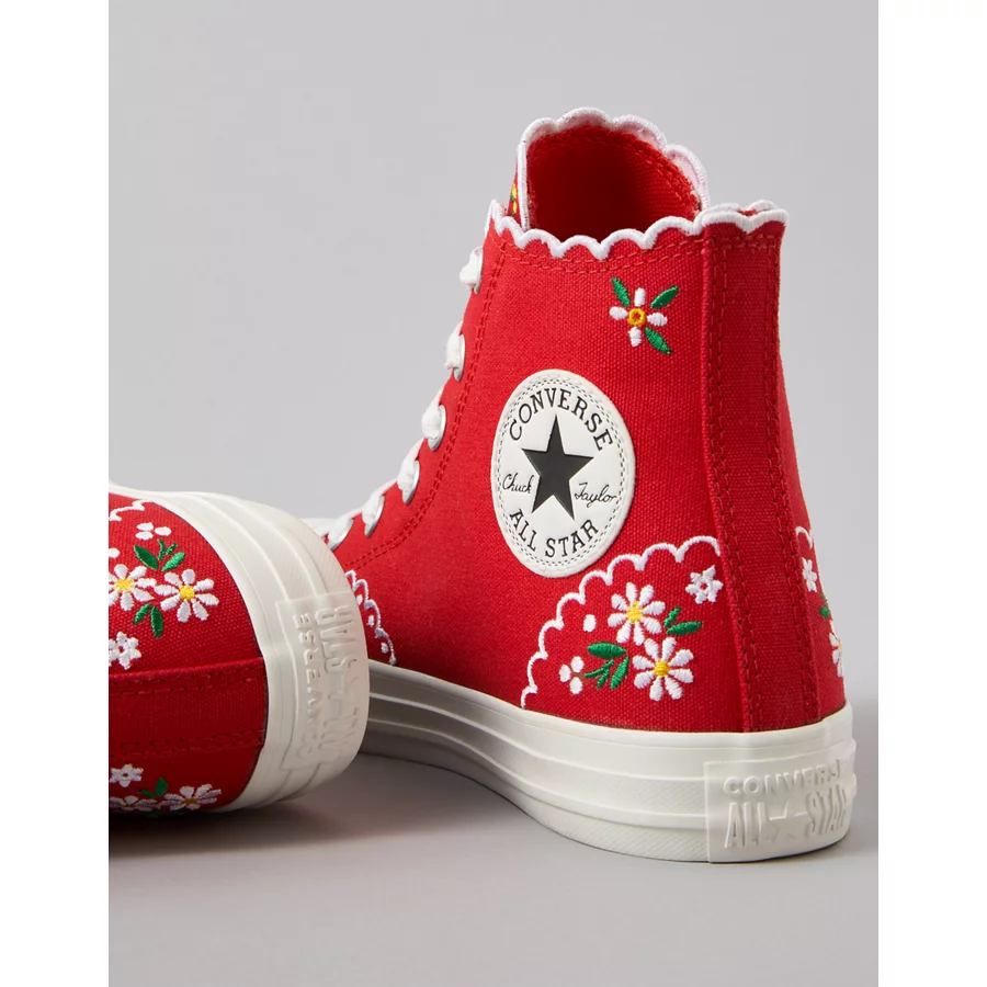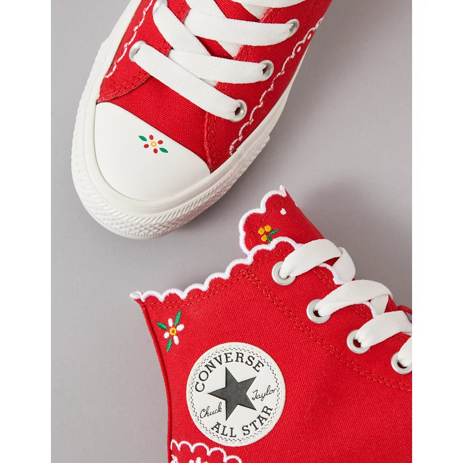 Converse Chuck Taylor All Star Embroidered Flowers High-Top Sneaker – Red