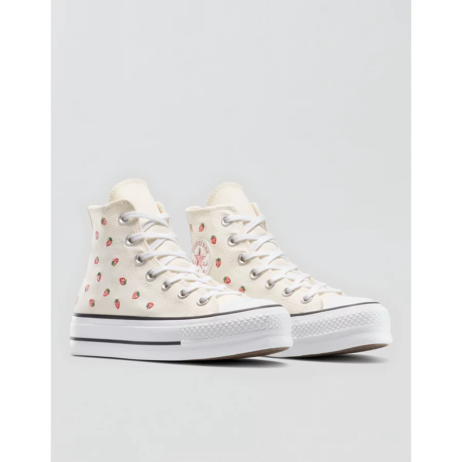 Converse Chuck Taylor All Star Lift Platform Embroidered Flowers Low-Top Sneaker - White