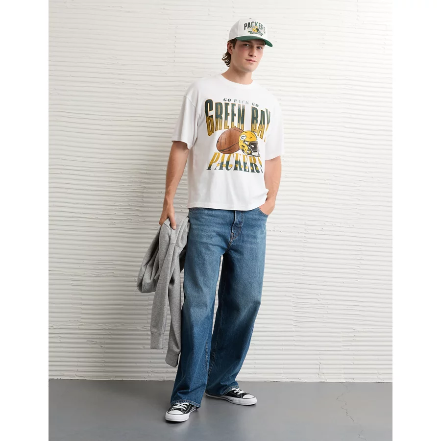 NFL Boxy Green Bay Packers Graphic T-Shirt – White