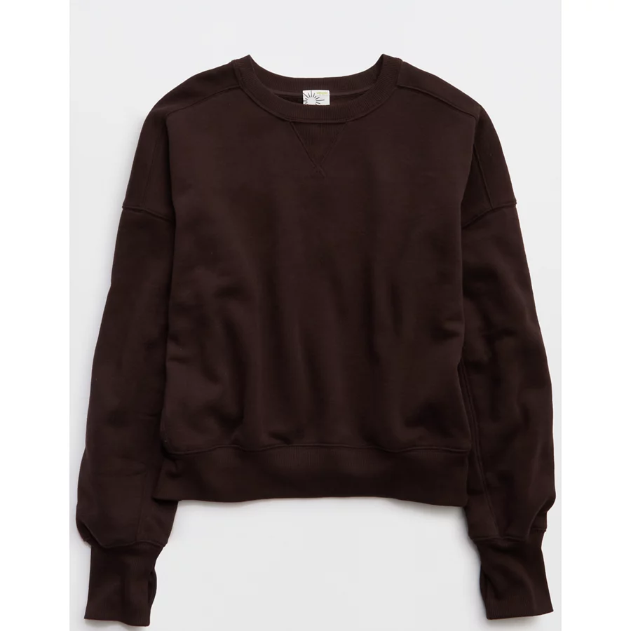 OFFLINE By Aerie Cloud Fleece Classic Crewneck Sweatshirt – Deep Earth
