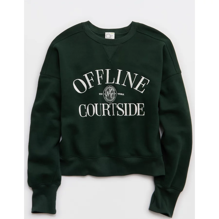 OFFLINE By Aerie Cloud Fleece Classic Crewneck Sweatshirt – Mystical Green