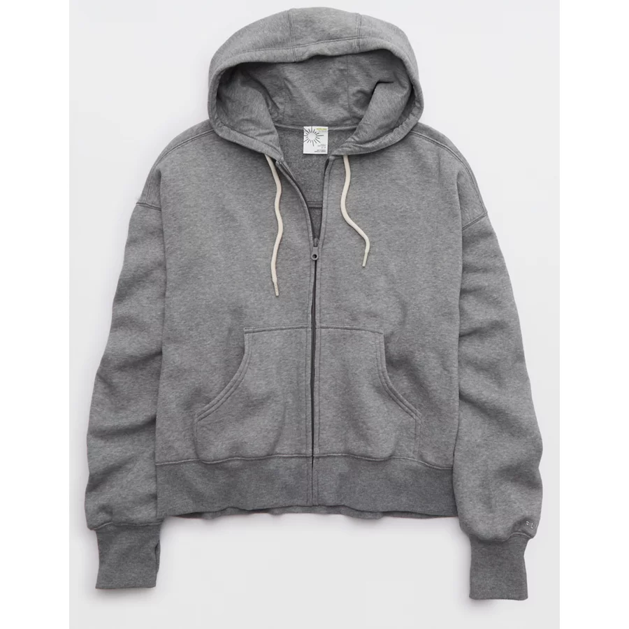 OFFLINE By Aerie Cloud Fleece Classic Full Zip Sweatshirt – Dark Heather Gray