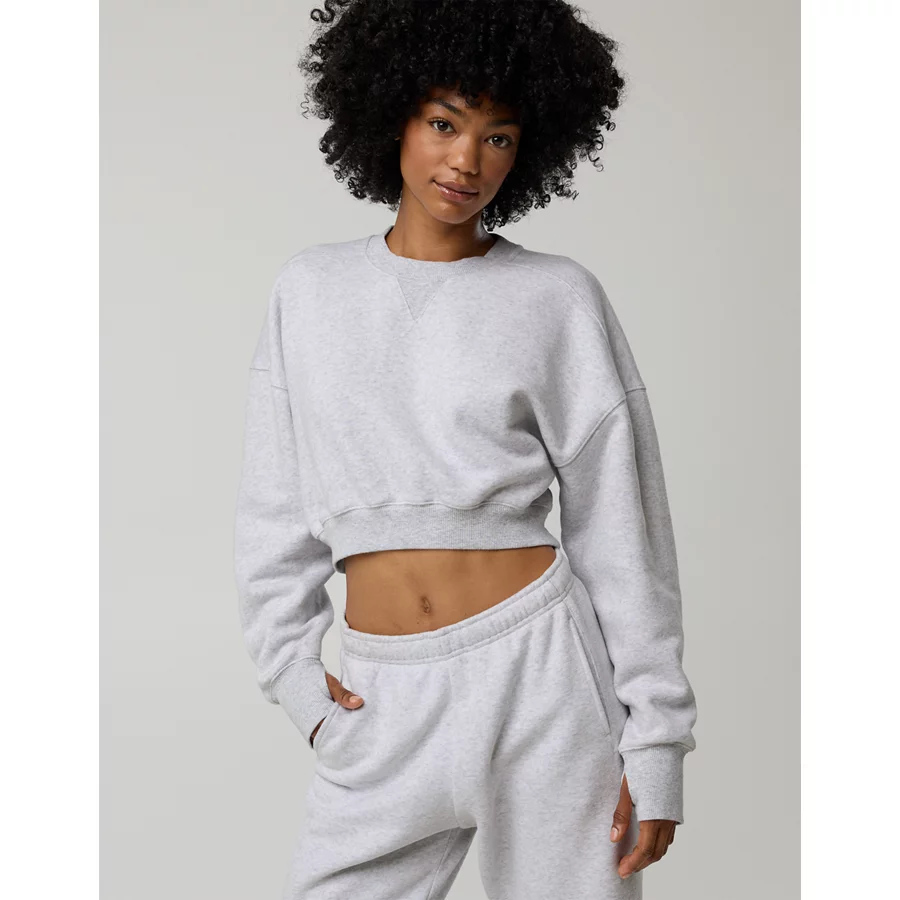 OFFLINE By Aerie Cloud Fleece Cropped Crewneck Sweatshirt – Light Heather Gray