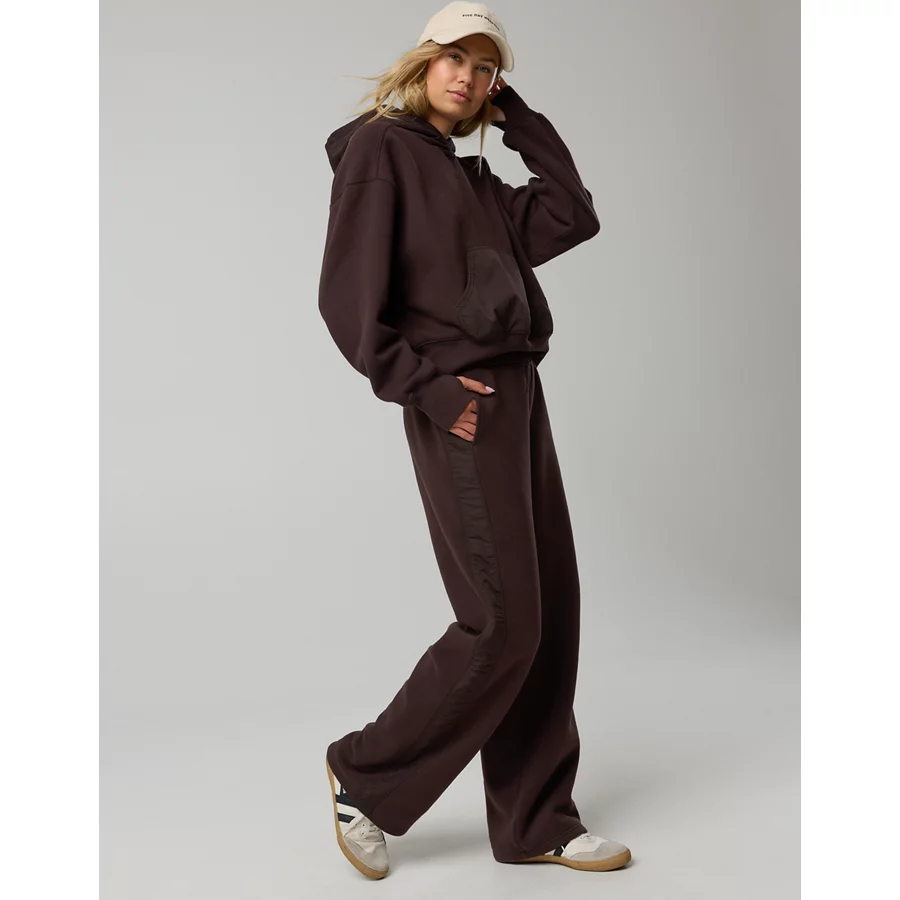 OFFLINE By Aerie Cloud Fleece Nylon Track Trouser – Deep Earth