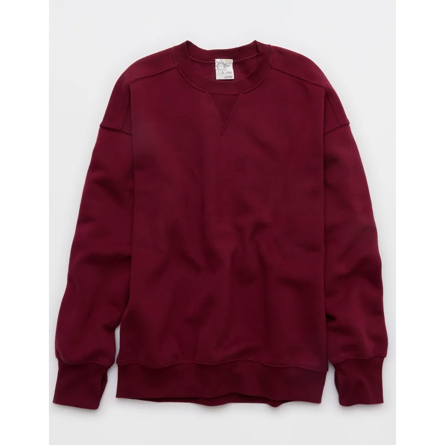 OFFLINE By Aerie Cloud Fleece Oversized Crewneck Sweatshirt – Deep Cherry
