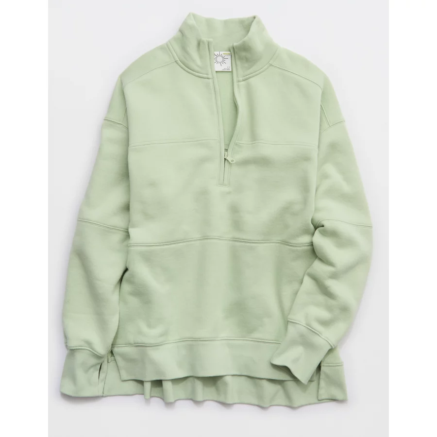 OFFLINE By Aerie Cloud Fleece Quarter Zip Sweatshirt – Dusty Sage