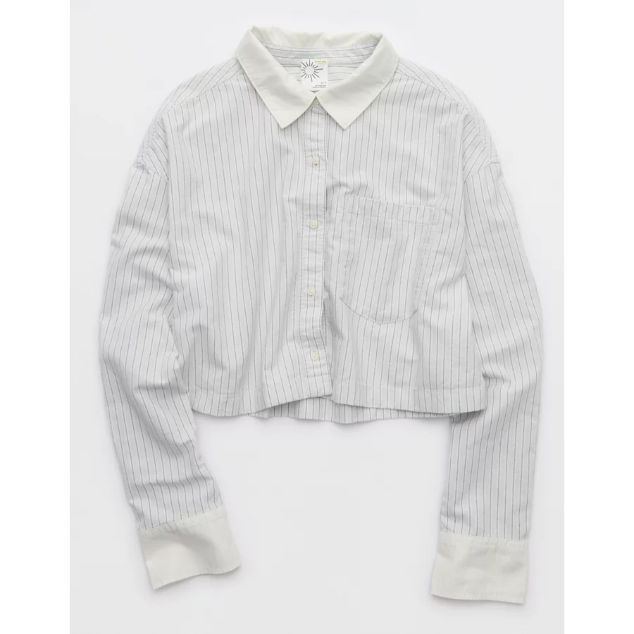OFFLINE By Aerie Cropped Button Up Shirt - Soft Muslin