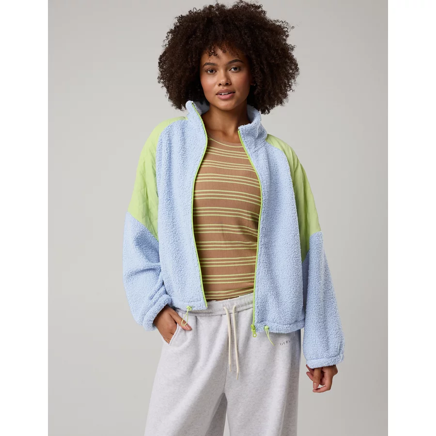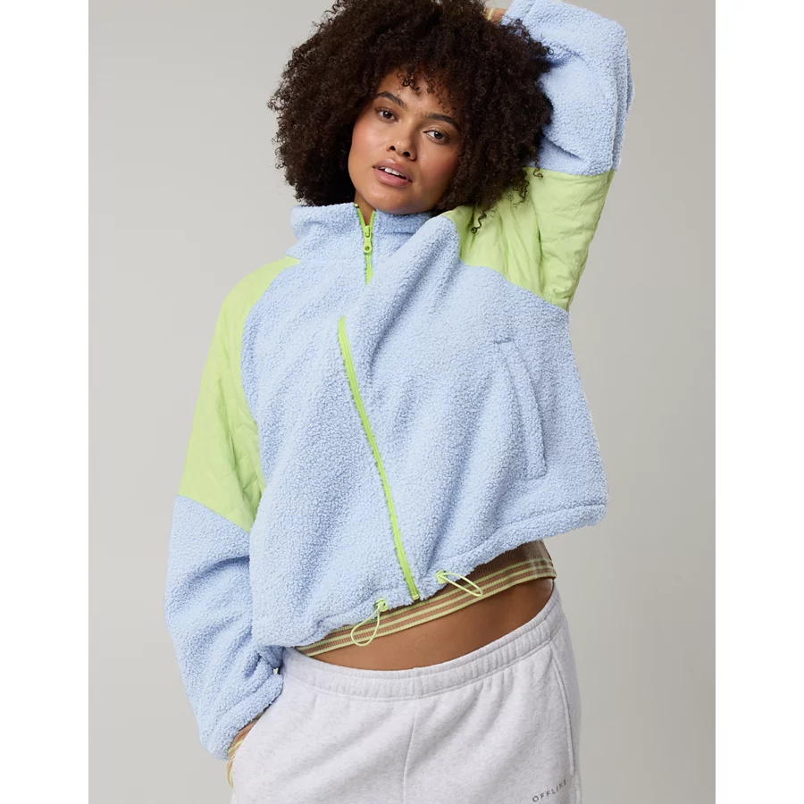 OFFLINE By Aerie Fluff Love Full Zip Jacket – Eyelet Blue