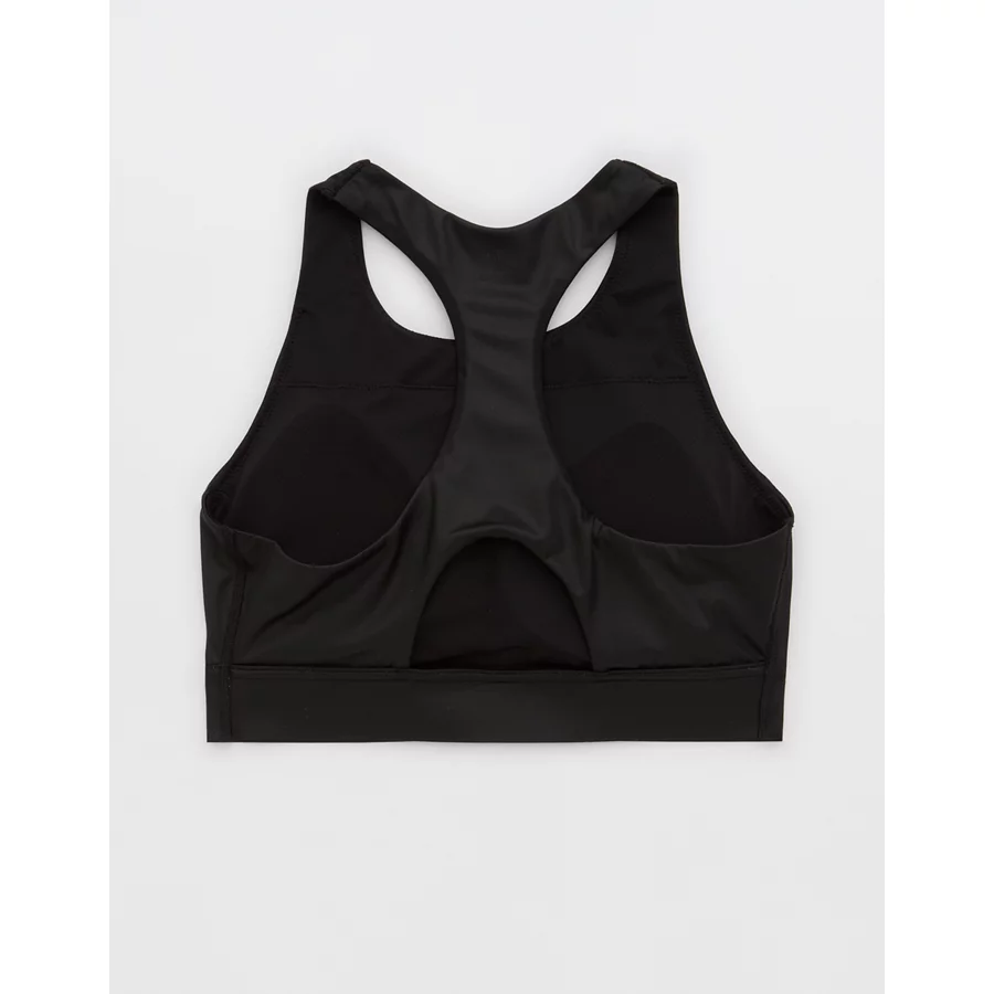 OFFLINE By Aerie Goals Gloss High Neck Sports Bra – True Black
