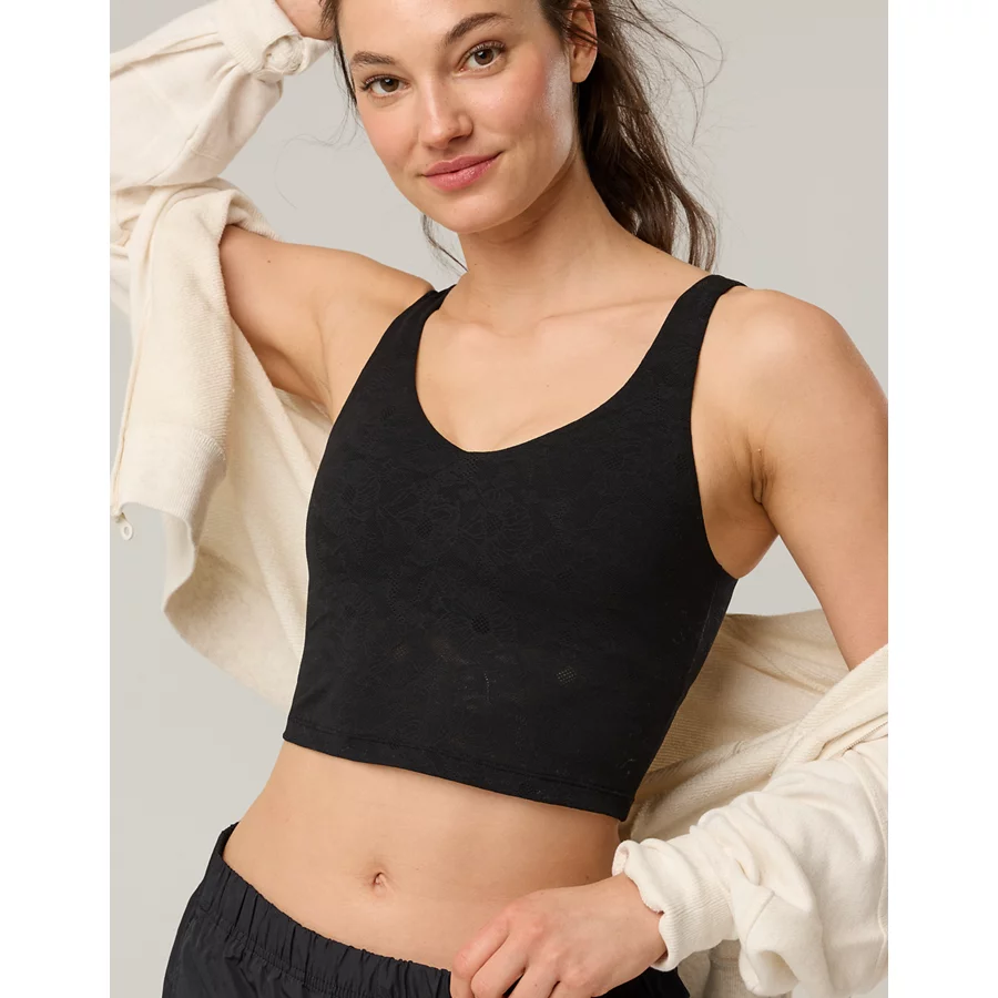 OFFLINE By Aerie Lace Low Key Longline Sports Bra – True Black