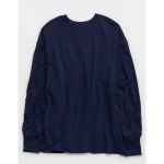 OFFLINE By Aerie Let’s Stretch Long Sleeve Boyfriend T-Shirt – Royal Navy