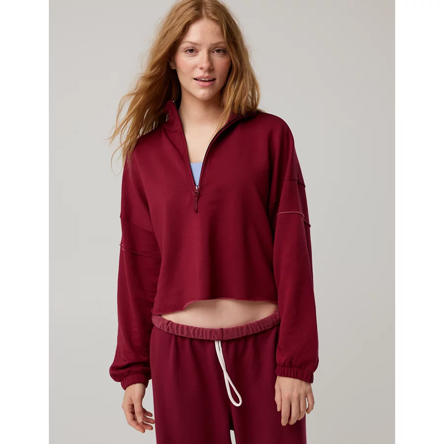 OFFLINE By Aerie OTT Seamed Quarter Zip Sweatshirt – Deep Cherry