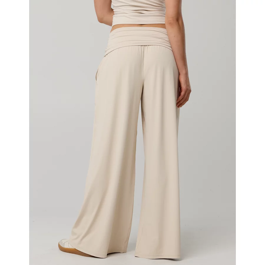 THE LOOK: Smooth with a matte finish. Super wide leg. Foldover waistband. Pockets.