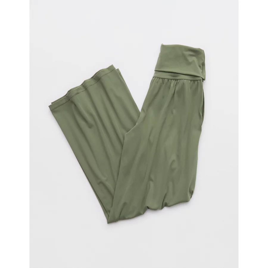 OFFLINE By Aerie Real Me Foldover Super Wide Leg Pant – Olive Fun
