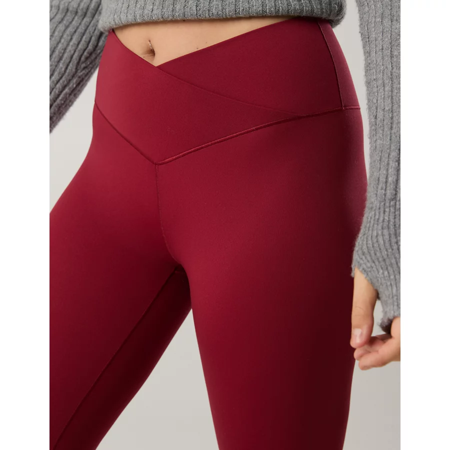 OFFLINE By Aerie Real Me High Waisted Crossover Flare Legging – Cherry Tart
