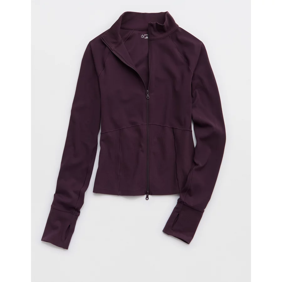 OFFLINE By Aerie Real Me Long Sleeve Mock Neck Full Zip – Cool Berry