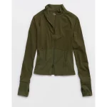 OFFLINE By Aerie Real Me Long Sleeve Mock Neck Full Zip – Military Green