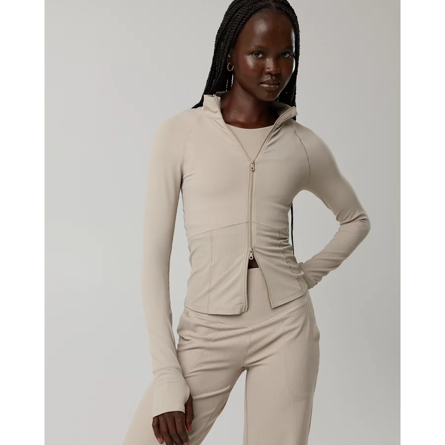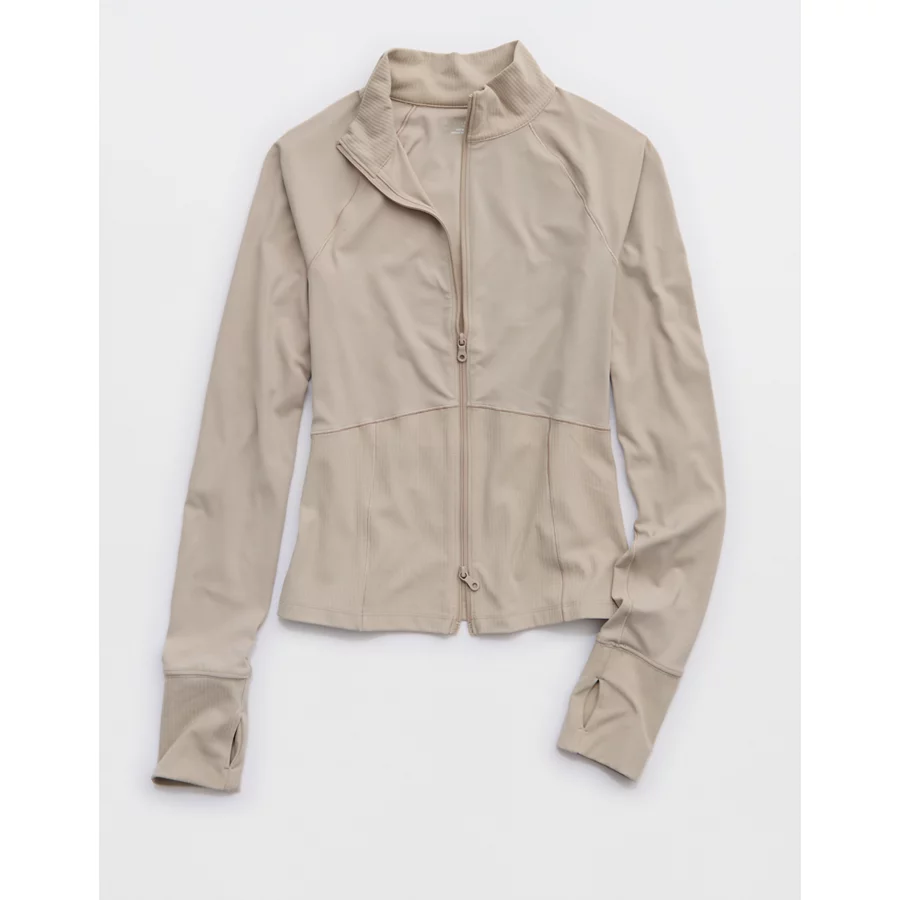 OFFLINE By Aerie Real Me Long Sleeve Mock Neck Full Zip – Stone Harbor