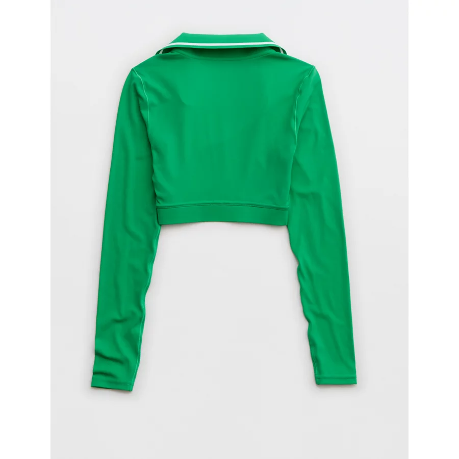 OFFLINE By Aerie Real Me Long Sleeve Polo T-Shirt – Green Mission