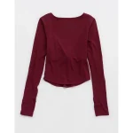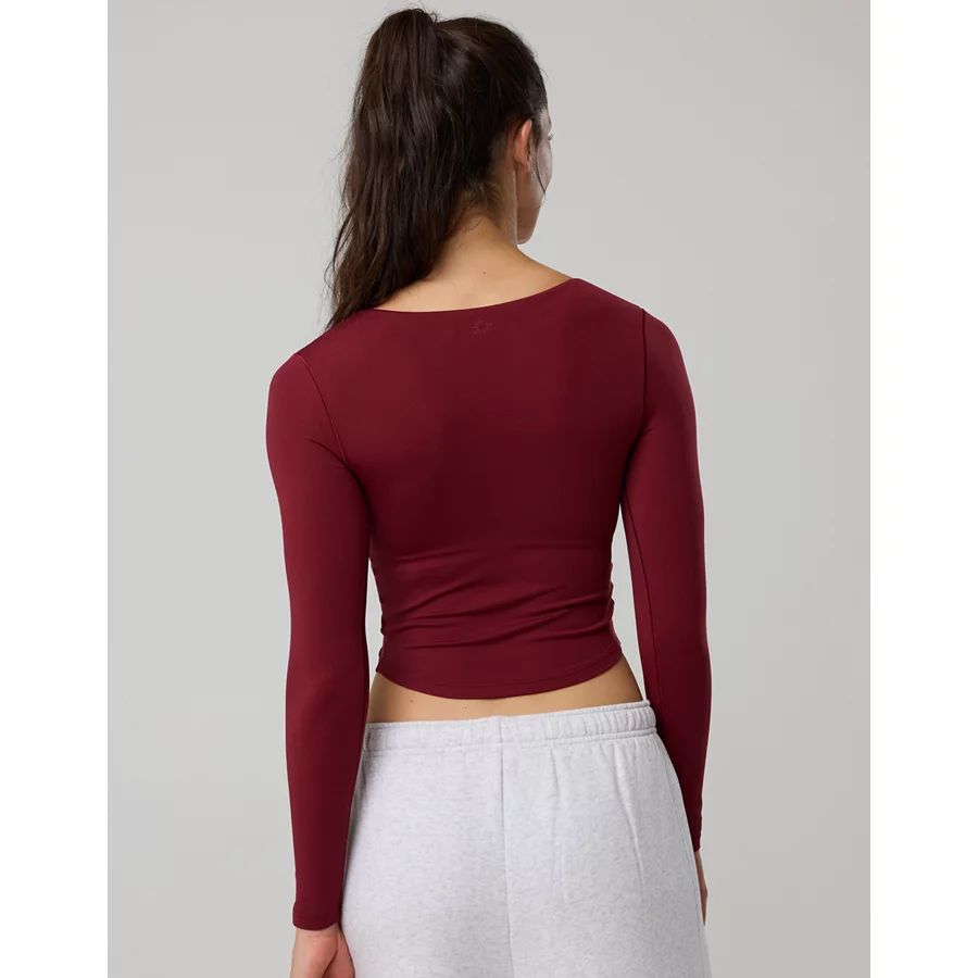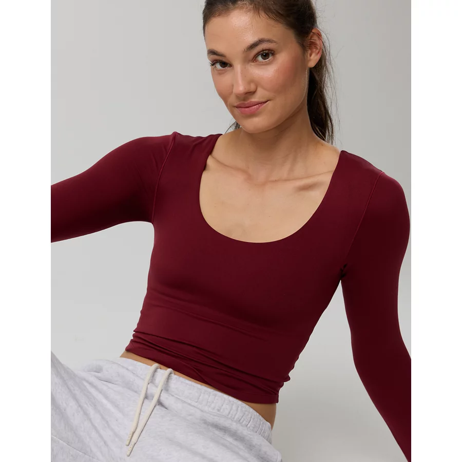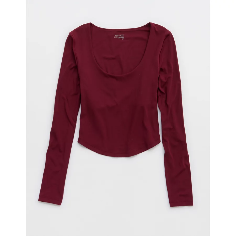 OFFLINE By Aerie Real Me Long Sleeve Scoop T-Shirt – Deep Cherry