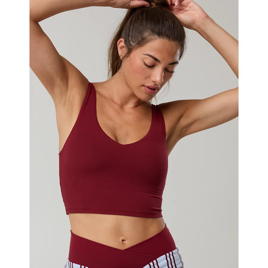 OFFLINE By Aerie Real Me Low Key Longline Sports Bra – Deep Cherry