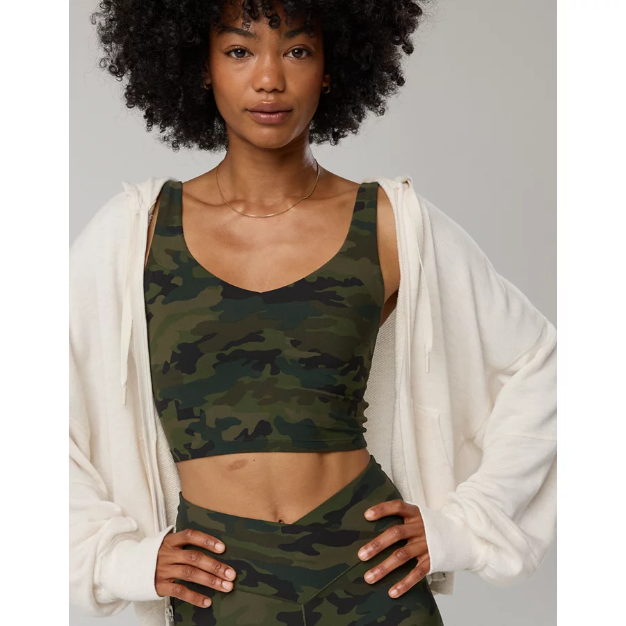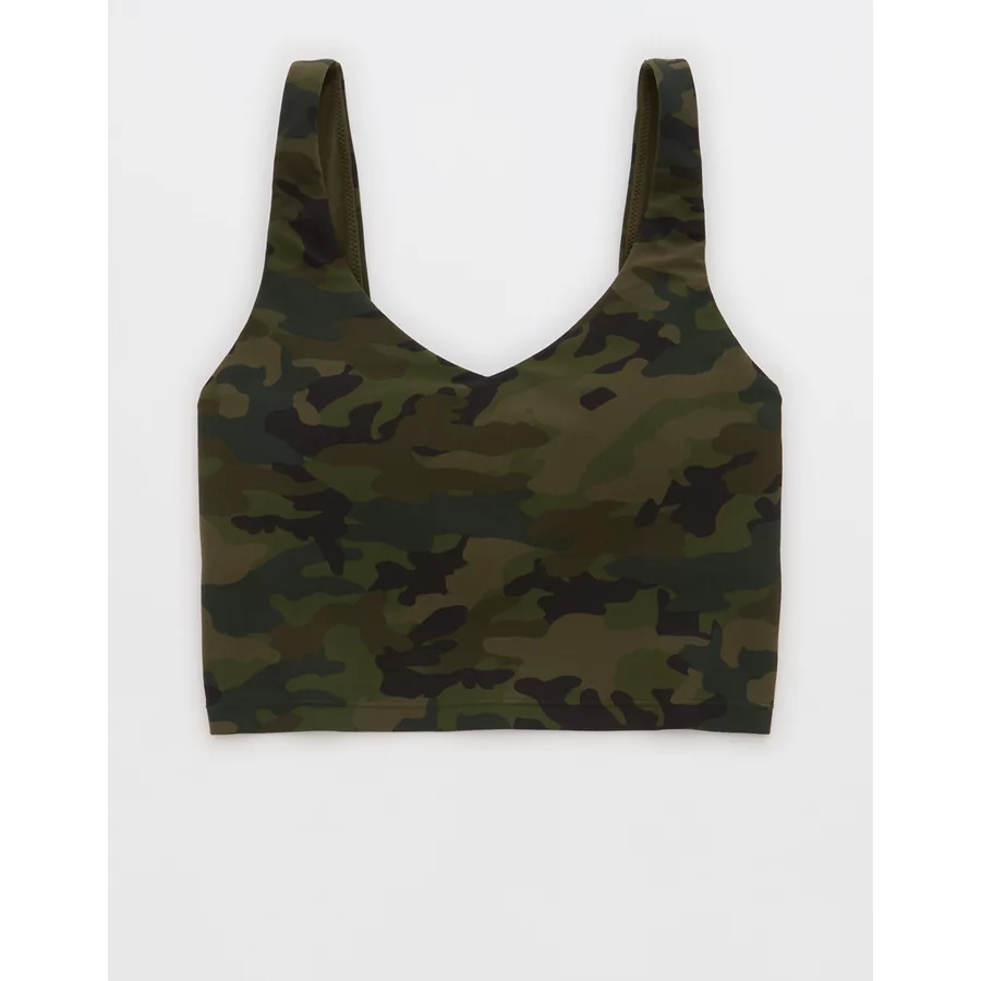 OFFLINE By Aerie Real Me Low Key Longline Sports Bra – Olive Daze