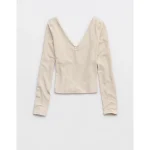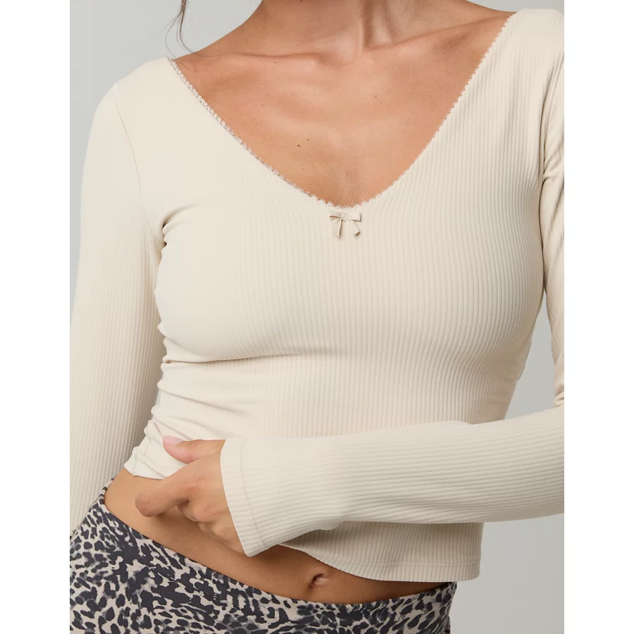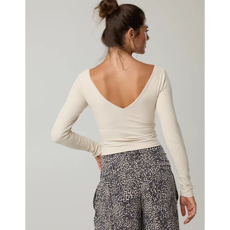OFFLINE By Aerie Real Me XTRA Rib Open V-Neck T-Shirt – Cake Batter