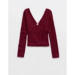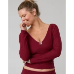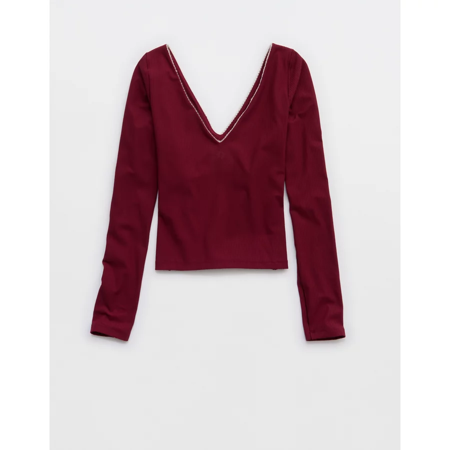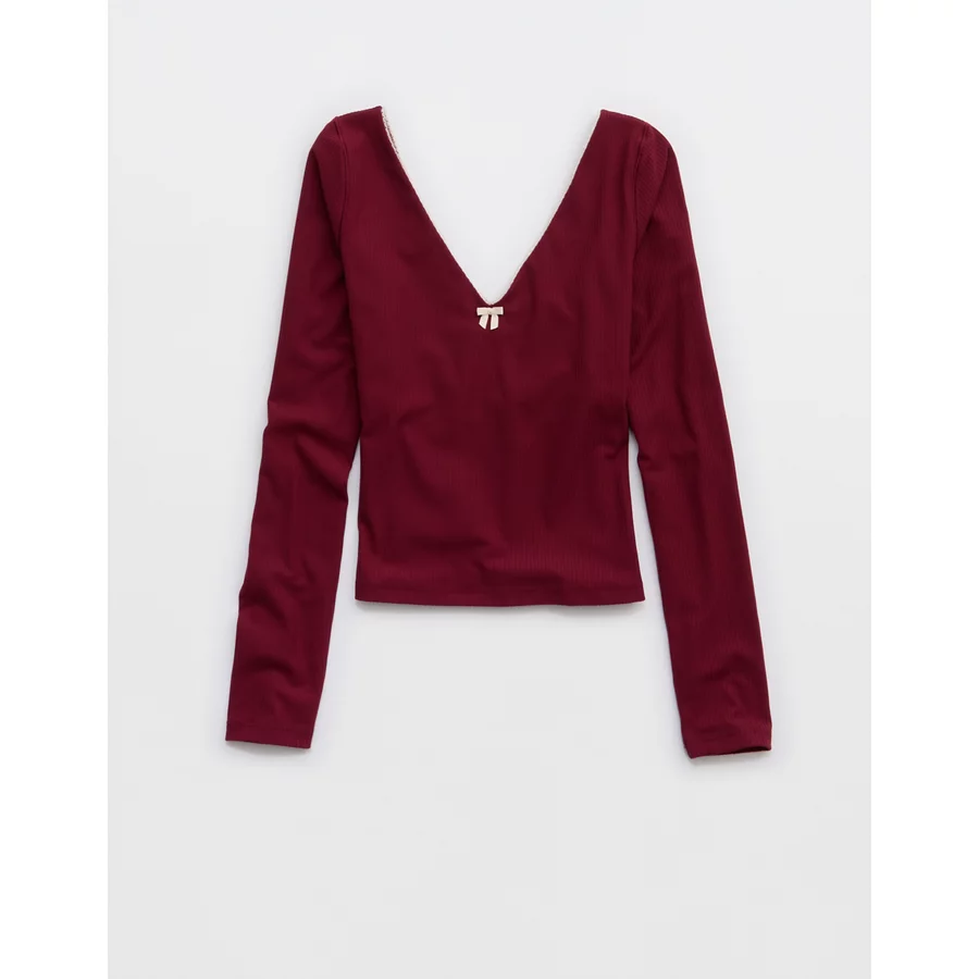 OFFLINE By Aerie Real Me XTRA Rib Open V-Neck T-Shirt – Deep Cherry