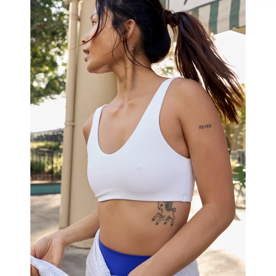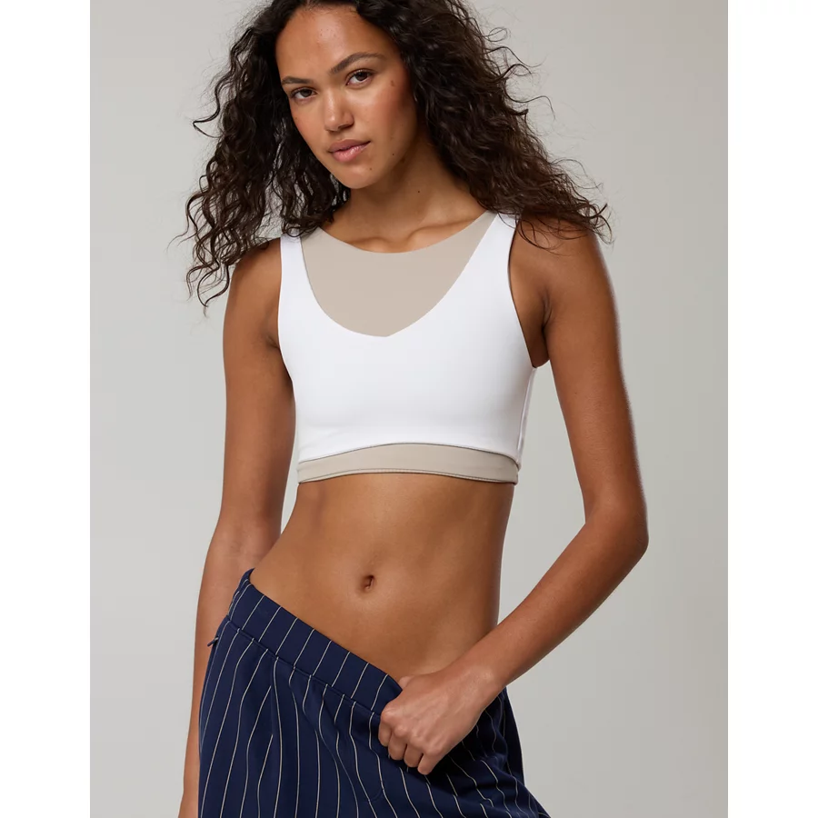 OFFLINE By Aerie Real Me XTRA Rib Switch Up V-Neck Sports Bra – White