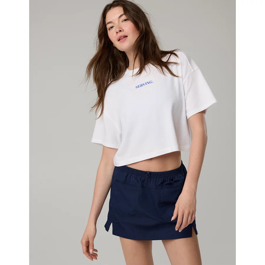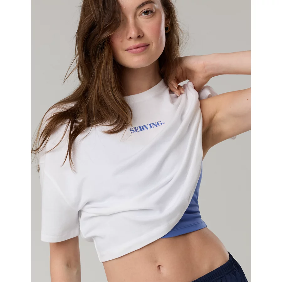 OFFLINE By Aerie Rock N Roll Cropped T-Shirt – White