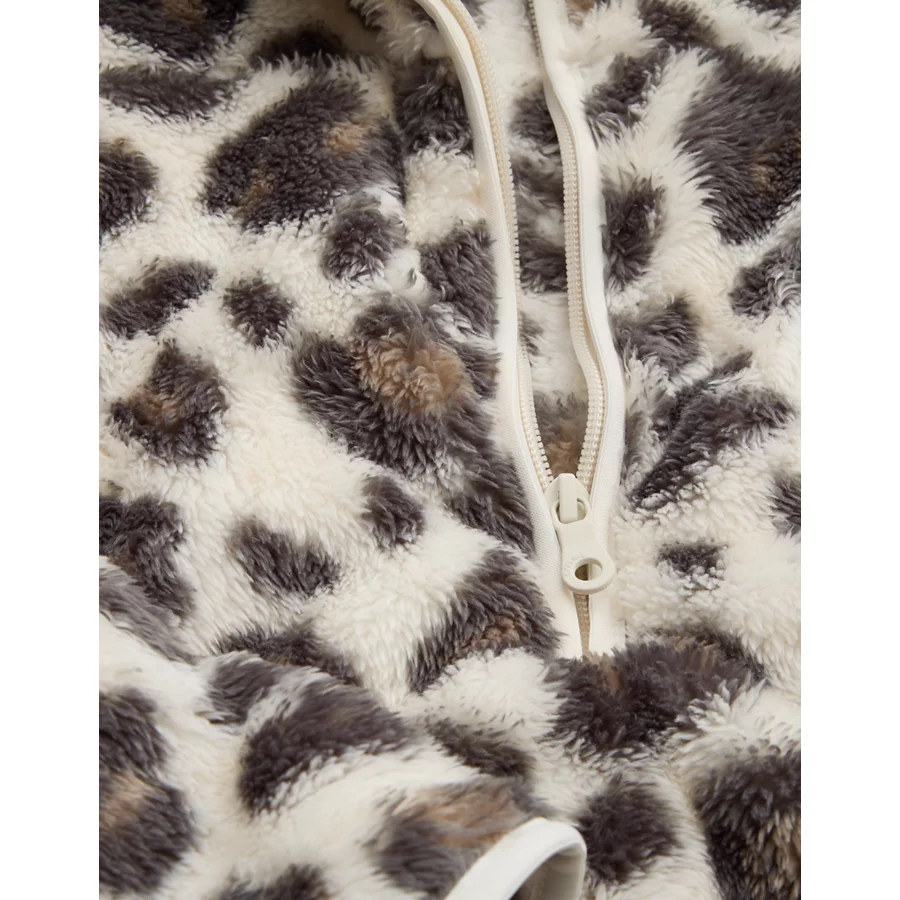 THE LOOK: Like a teddy bear you can wear. Quarter zip neckline.