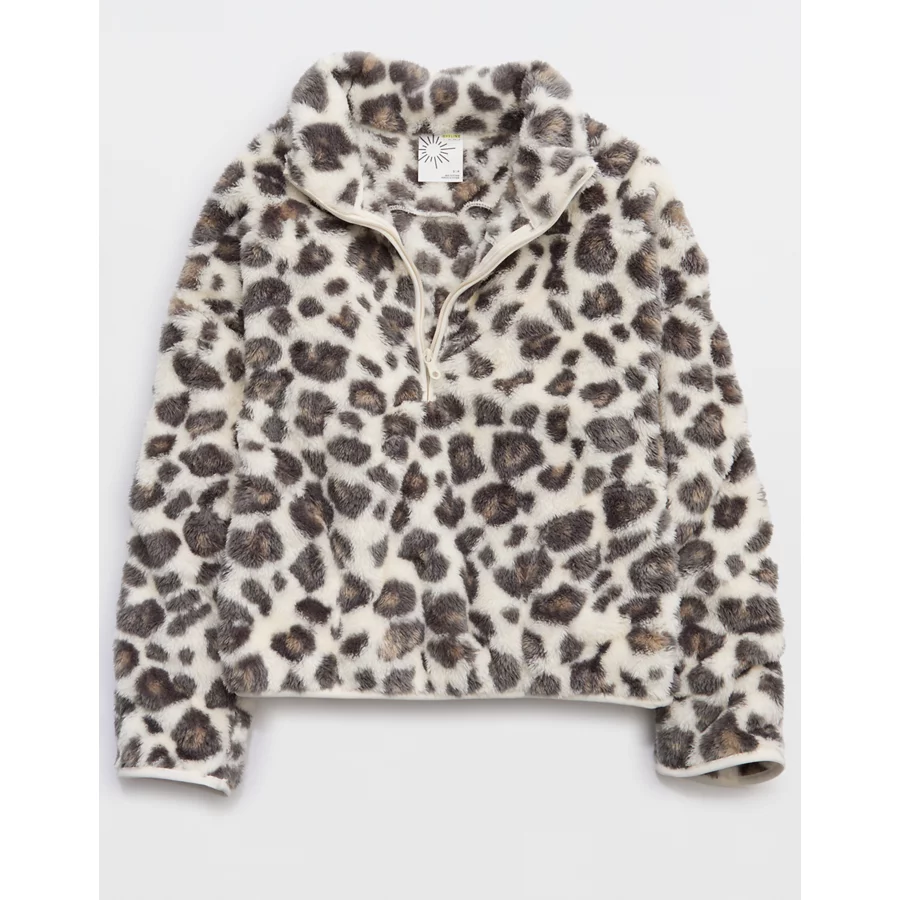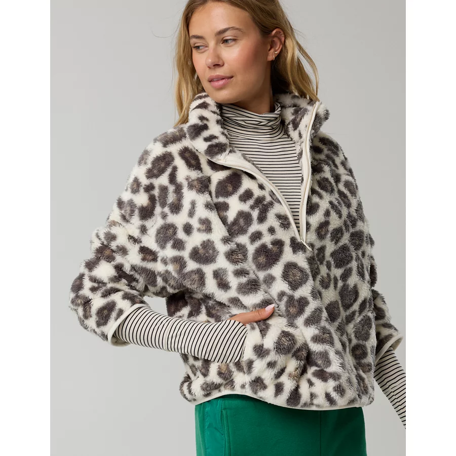 OFFLINE By Aerie Sherpa Quarter Zip Jacket – Shell Gray